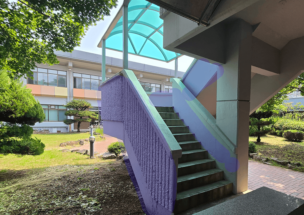 계단이 연속되어 있으면 쉴 공간이 없어 위험하기에 계단참의 유무가 중요하다.