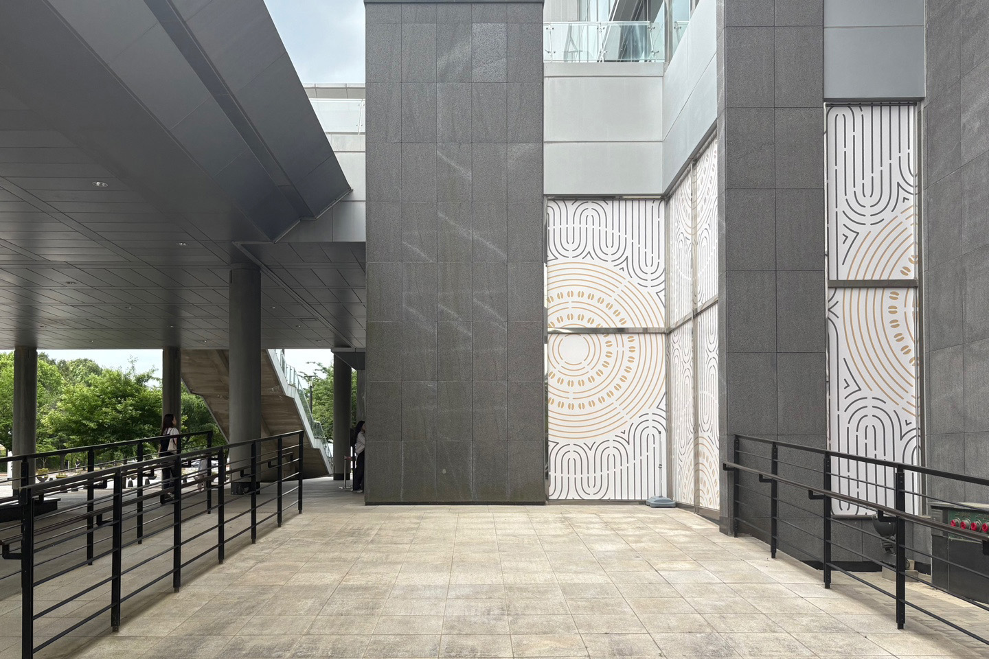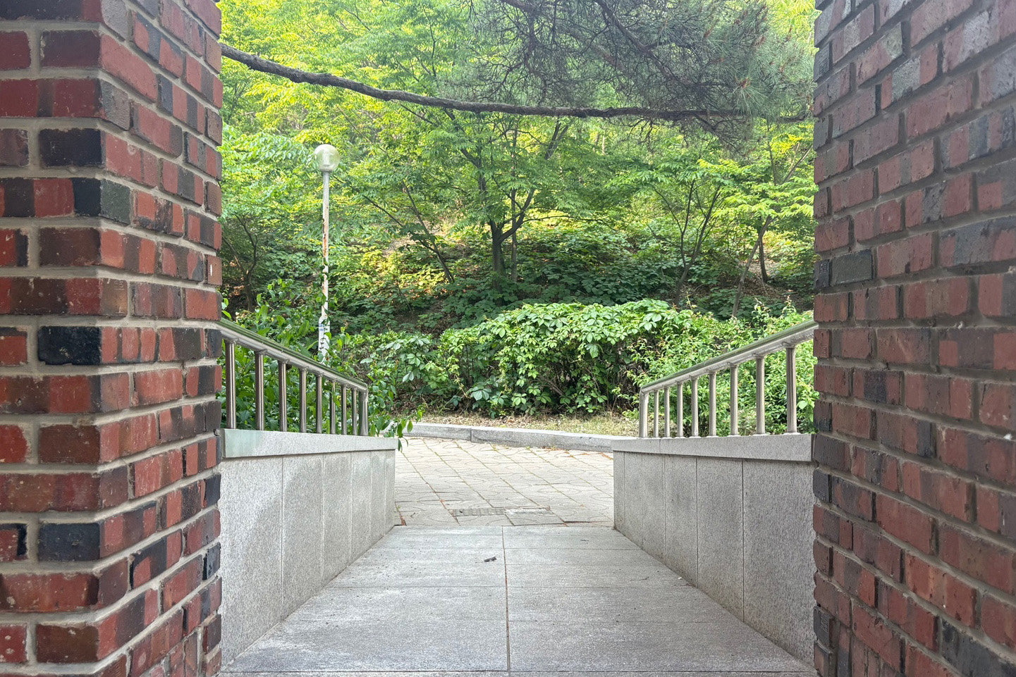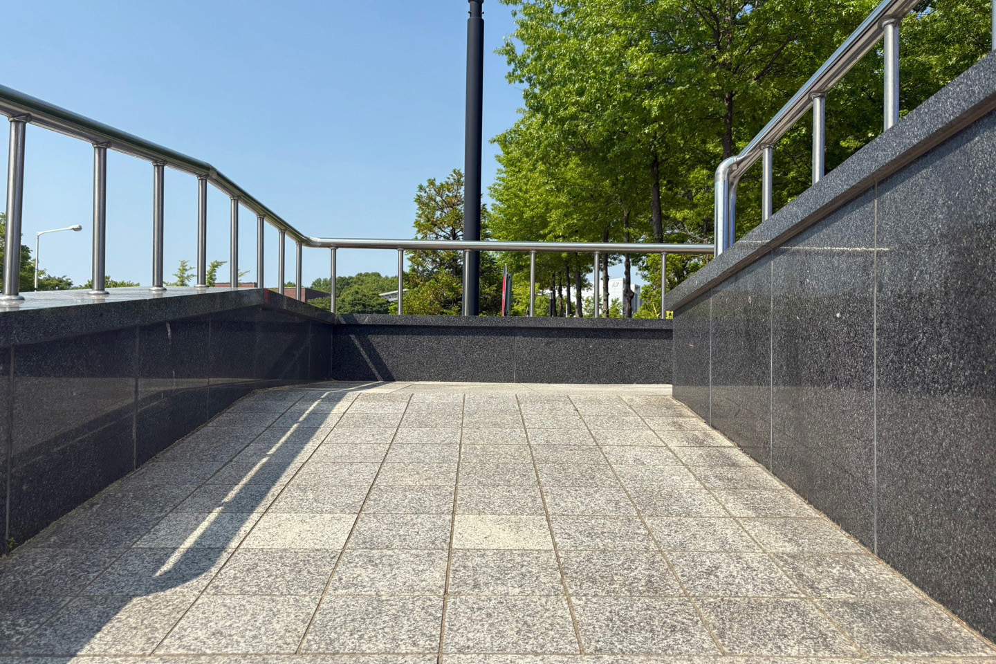 직선형 구조이며 석재 바닥, 스테인리스 손잡이 구성입니다.