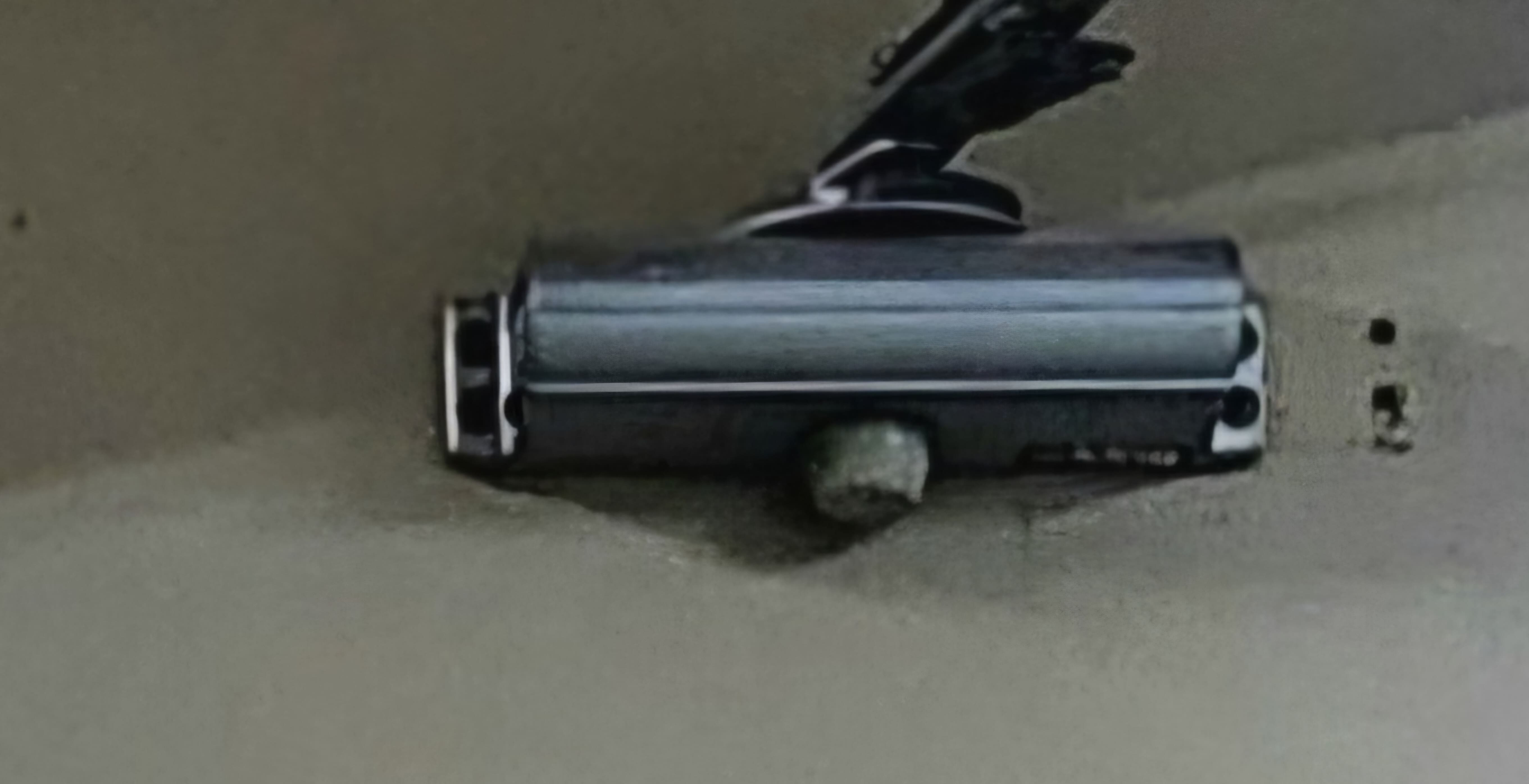 문의 상단의 안전 장치 : 문이 자동으로 천천히 닫히게 해줌.